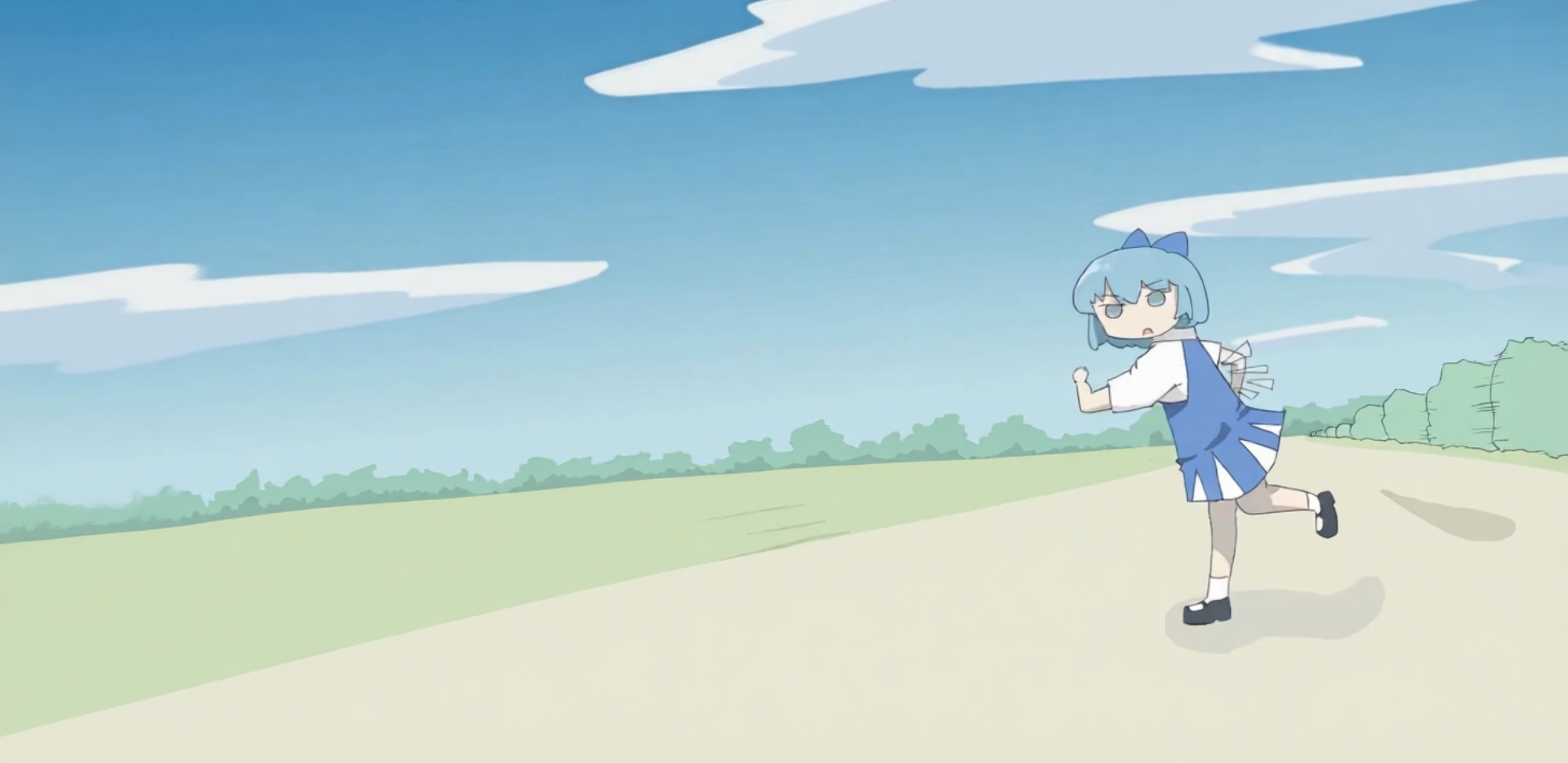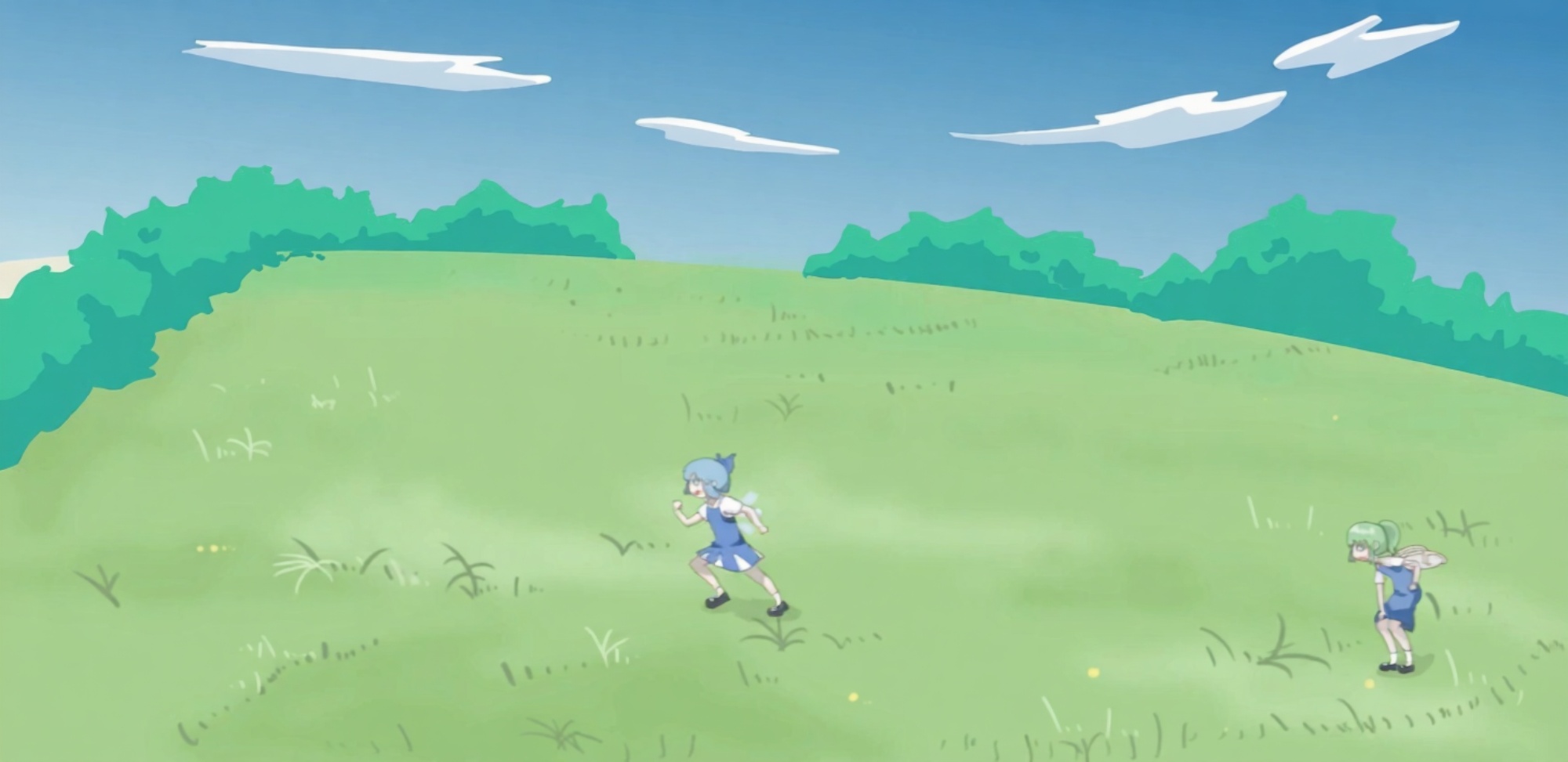芙兰骑着摩托车,来到了城市的边缘,这个时候,她一不小心撞死了冲出来的琪露诺
