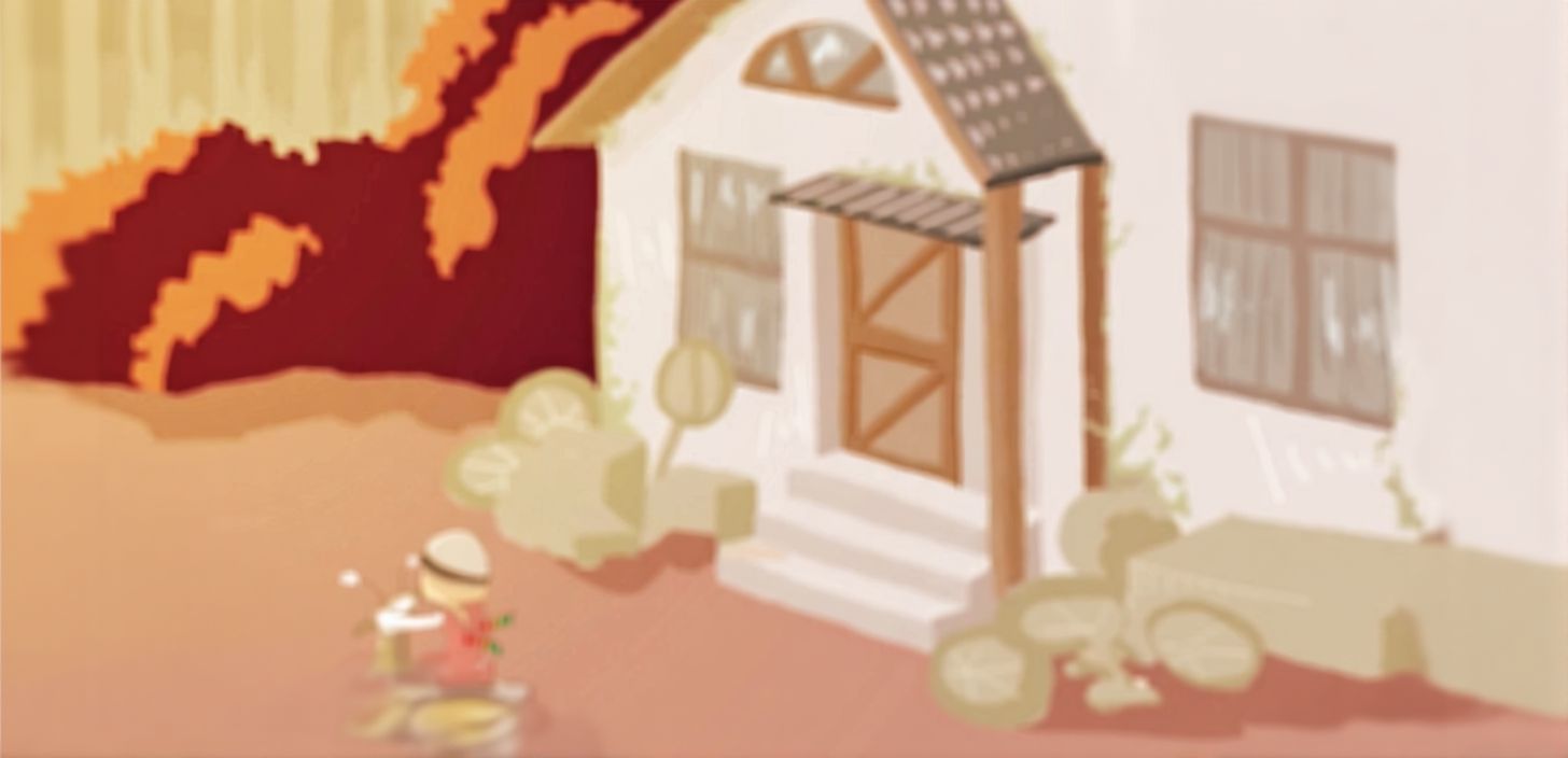 她来到了一个破破烂烂摆着各种杂物的房子前