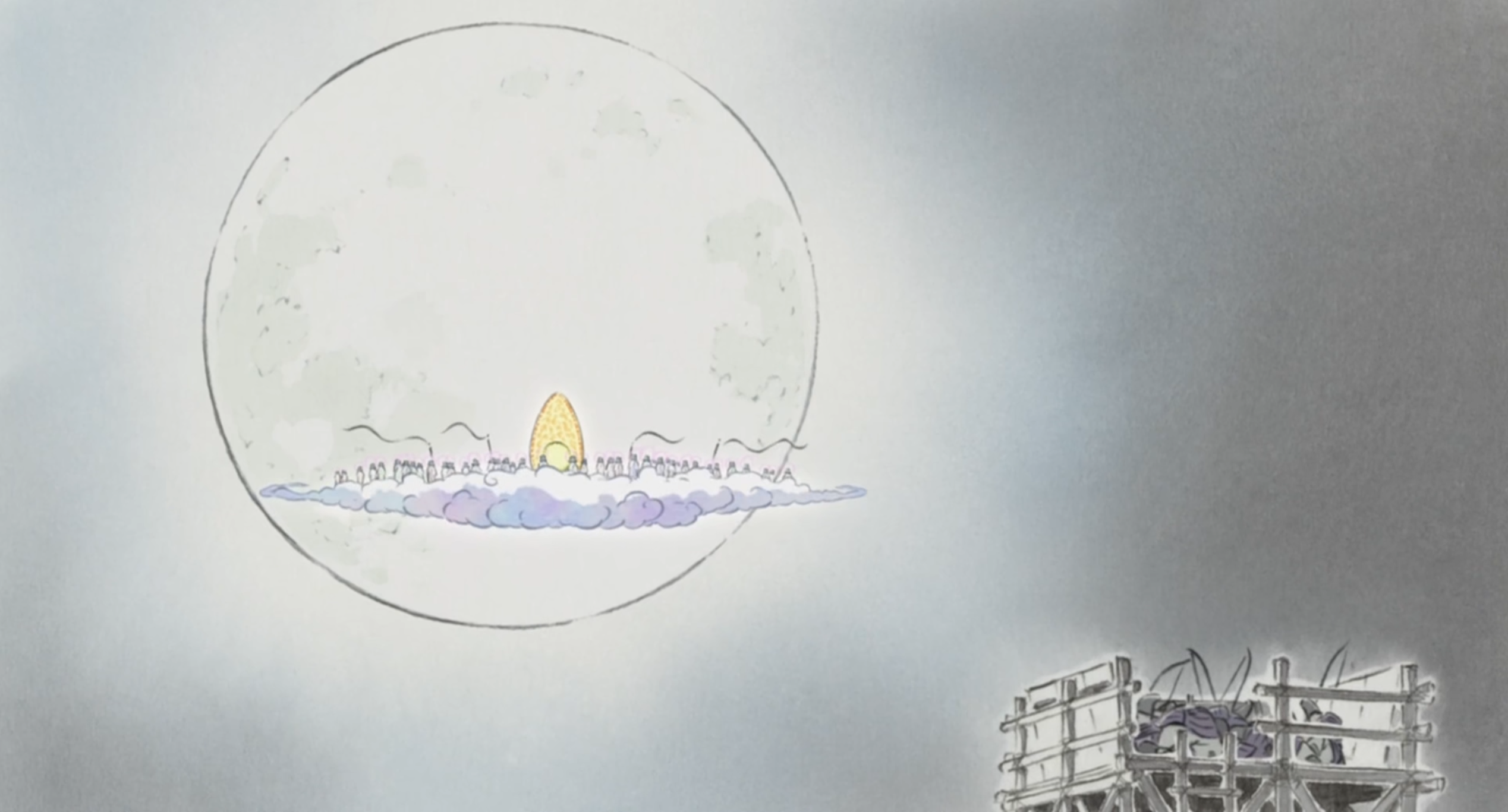 原来,辉夜姬原是月亮上的人,因为在月亮世界犯下了罪行,被流放到地上世界。如今,回去的时间已到,月球上的人将会派使者下来接走辉夜姬。