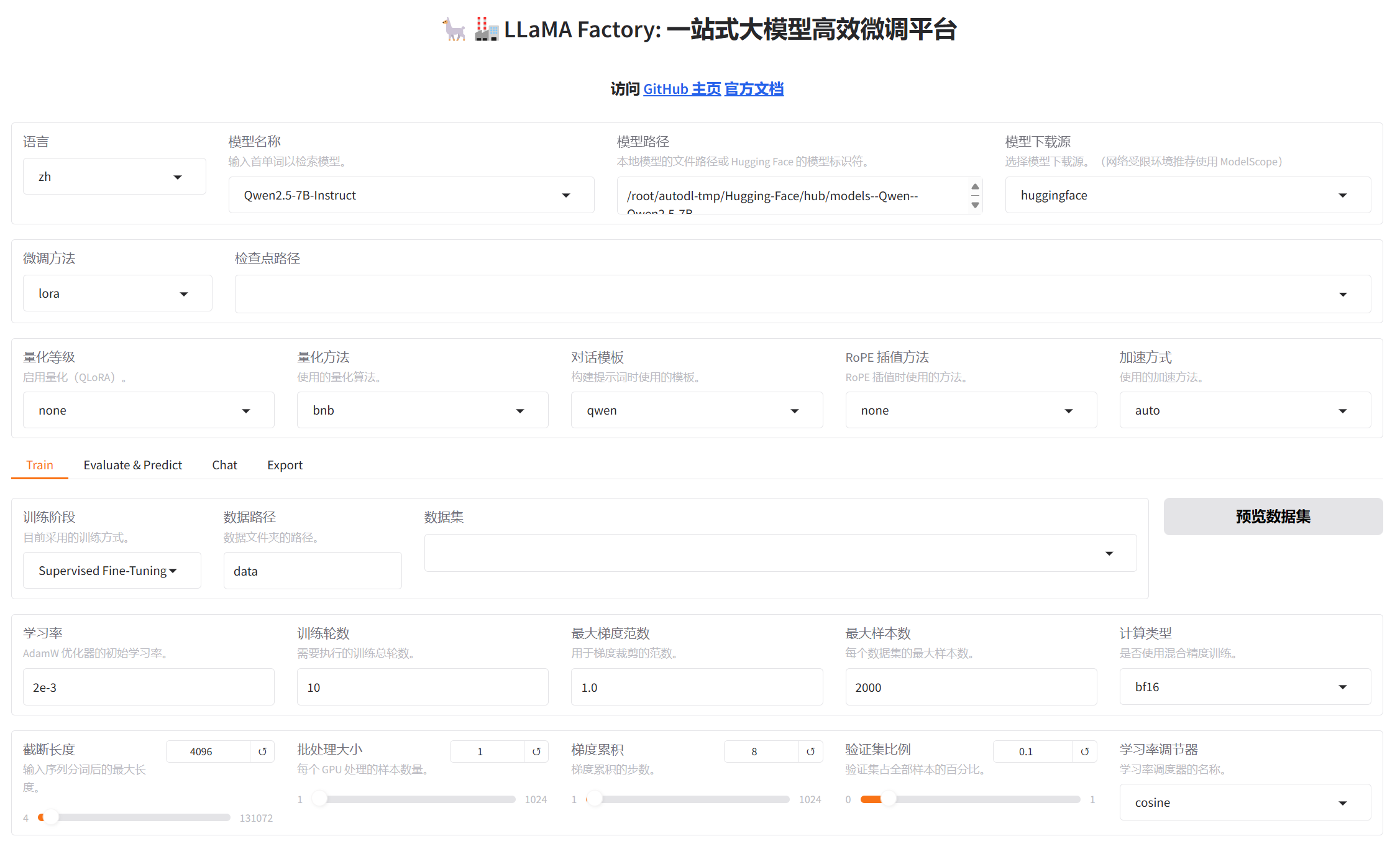 至于微调工具,懒人当然是选择LLaMA-Factory,不需要额外编写代码,而且界面友好
