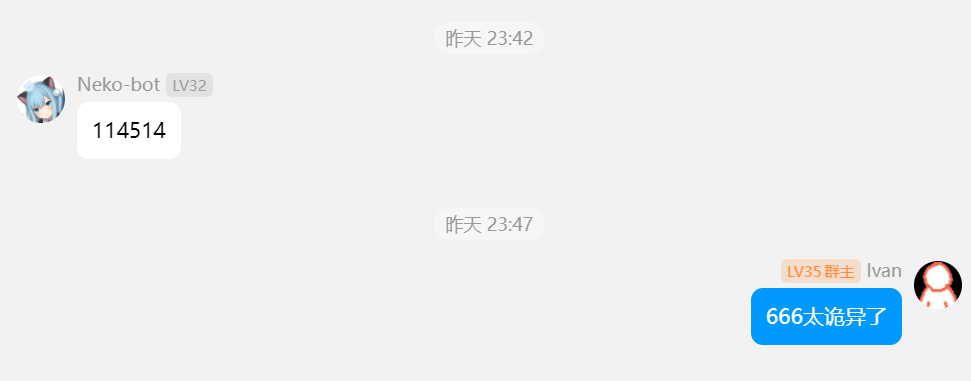 9月8日23:21,Neko(也就是bot)发出了一个不应存在的消息"114514",引起了我的注意,但是当时我只是认为这是Astrbot的某个插件的条件触发导致的消息(因为我也没有完全检查那些插件的功能)。