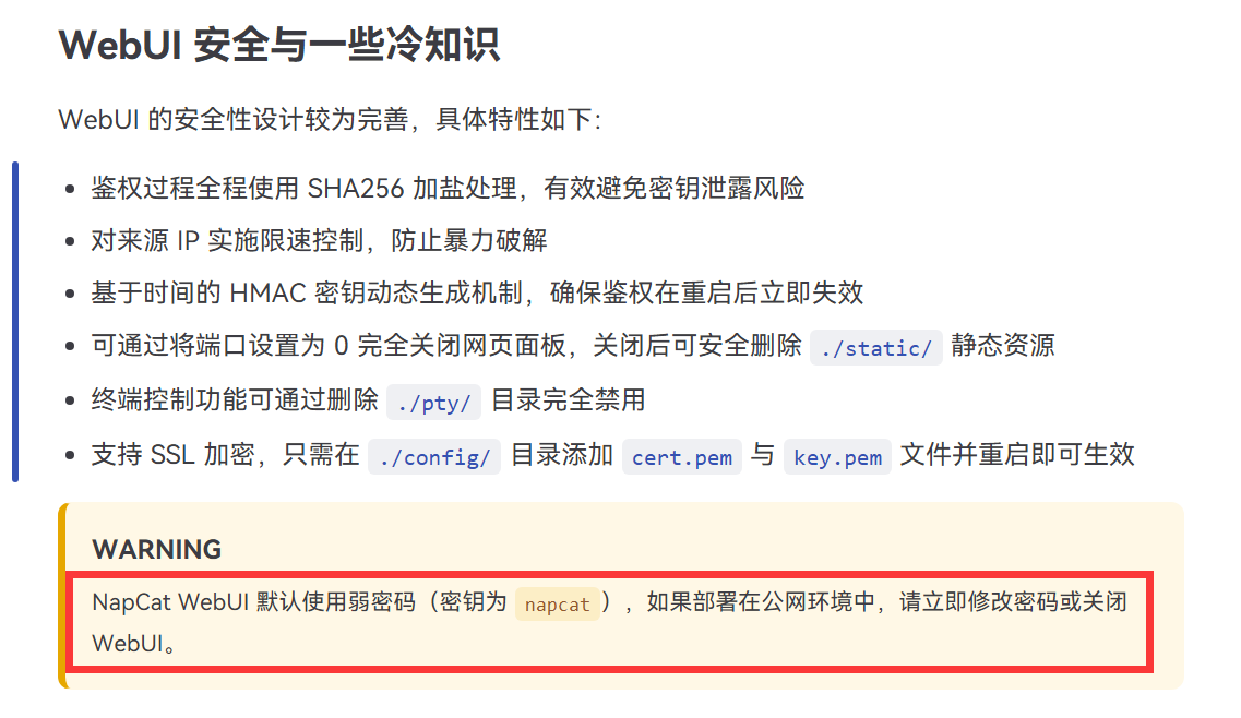 注意到我并没有配置WebUI密码,并且公开了Napcat WebUI端口导致了被攻击者利用。